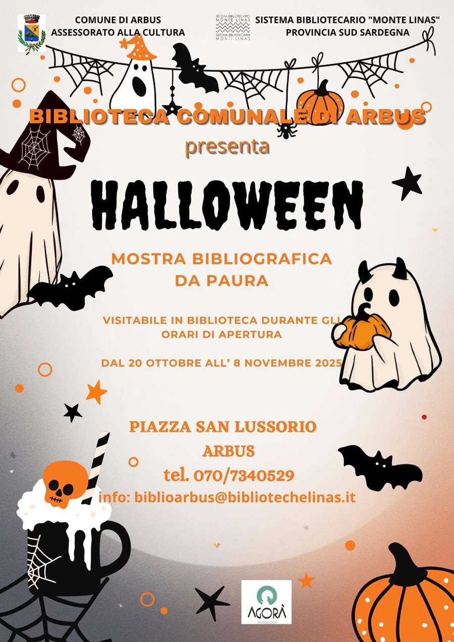 La Biblioteca Comunale, in collaborazione con il Sistema Bibliotecario “Monte Linas” e la cooperativa Agorà Sardegna, con il patrocinio del Comune – Assessorato alla Cultura, invita tutti gli appassionati del mistero alla mostra tematica “Halloween – Mostra bibliografica da paura!”, visitabile fino all’8 novembre.